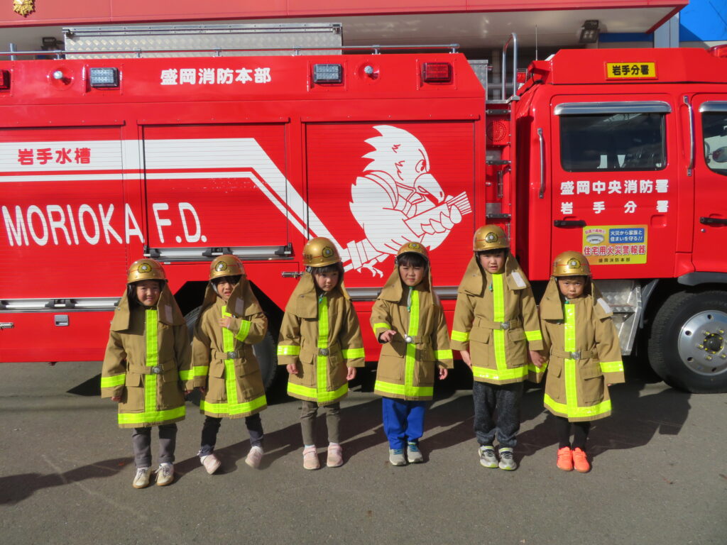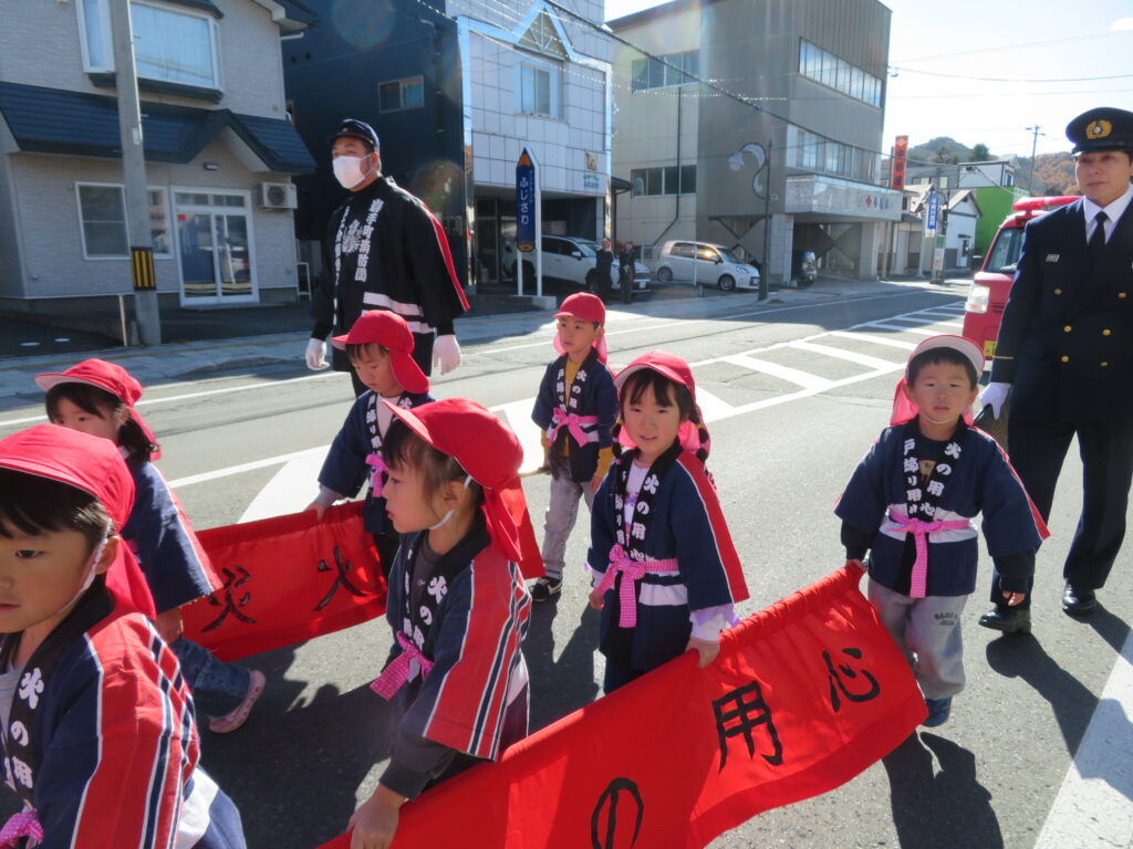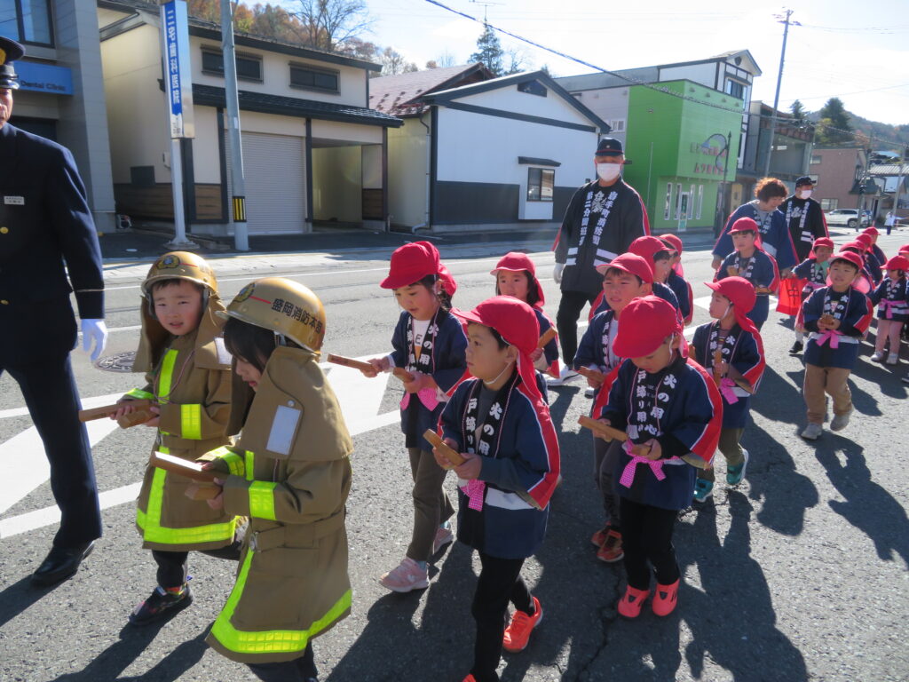 【松・竹組】防火パレード 2025年11月15日 ブログ 秋晴の中、今年も城山保育園幼年消防クラブ員24名が防火パレードを行いました。今年から、コロナ禍前に行っていた沿道を歩く防火パレードに変わり、元気に町の方々に「火に用心」を呼びかけました! 恒例の消防署での記念撮影もとても楽しんでいた子どもたちです😊消防署、岩手町役場、地域の皆さま、今年もありがとうございました! 前の記事